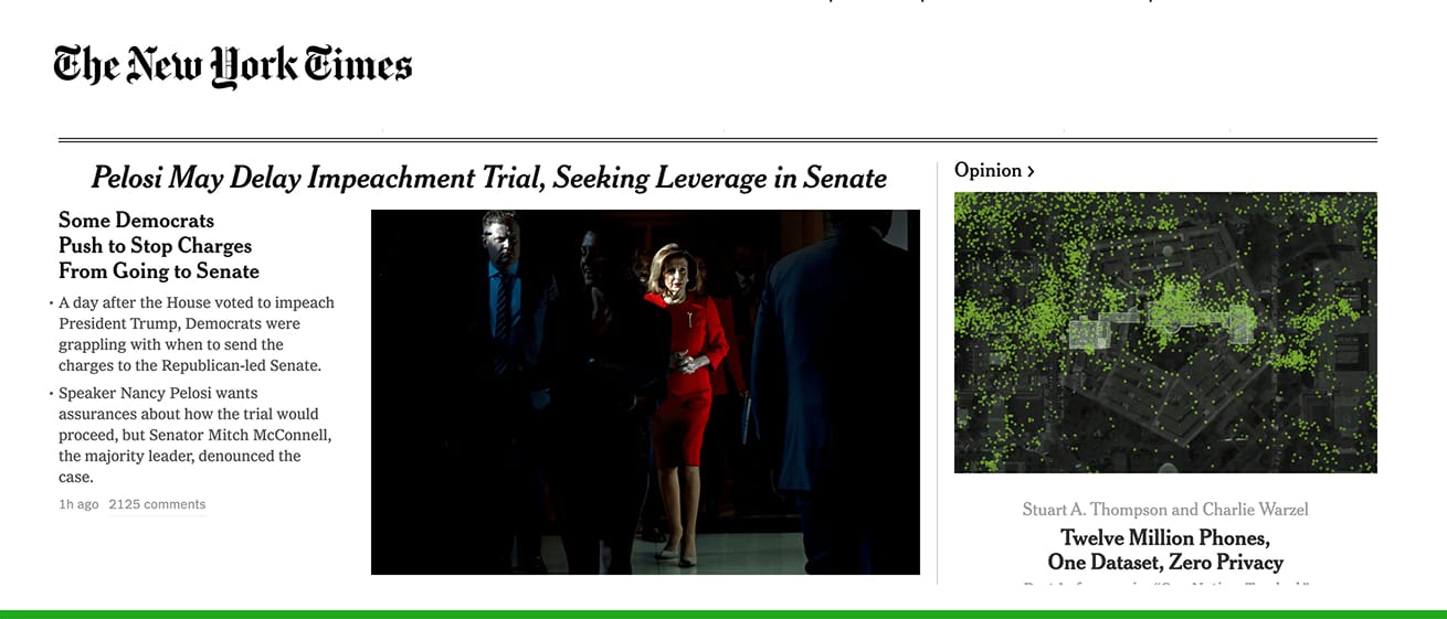 A news interface must remain visually balanced. I compared The New York Times (2018), where the grid holds equilibrium, with news.mail.ru of the same era, where composition collapsed toward the right side.